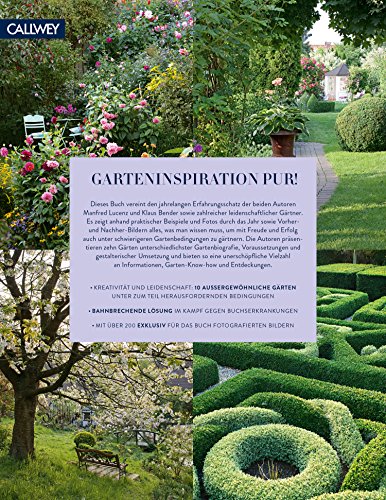 Garteninspiration pur! Dieses Buch vereint den jahrelangen Erfahrungsschatz der beiden Autoren Manfred Lucenz und Klaus Bender sowie zahlreicher leidenschaftlicher Gärtner und zeigt an praktischen Beispielen alles, was man wissen muss, um mit Freude und Erfolg auch unter schwierigeren Gartenbedingungen zu gärtnern. Die Autoren präsentieren zehn Gärten unterschiedlichster Gartenbiografie, Voraussetzungen und gestalterischer Umsetzung und bieten dem Leser so eine unerschöpfliche Vielzahl an Informationen, Garten-Know-how und Entdeckungen.