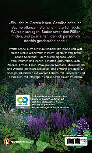 „Ein Jahr im Garten leben. Gemüse anbauen. Bäume pflanzen. Blümchen natürlich auch. Wurzeln schlagen. Boden unter den Füßen finden, und zwar einen, den ich persönlich dorthin geschaufelt habe.“ Weltreisende sucht Ort zum Bleiben: Mit Tempo und Witz erzählt Meike Winnemuth in ihrem Tagebuch von ihrem neuen Abenteuer – dem ersten eigenen Garten. Vom Träumen und Planen, Schuften und Graben, Säen, Pflanzen, Ernten, Essen. Vom großen Wachsen (Muskelkater!) und Werden (plötzlich: geduldig!). Und entführt uns dabei an einen paradiesischen Ort wahren Lebens, mit Radieschen und Schnecken, mit Rittersporn und anderen blauen Wundern. Das Buch wird nach höchsten ökologischen Standards (Cradle to Cradle) hergestellt und nicht in Folie eingeschweißt.